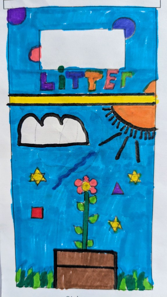 We set the children at Scout Road Academy a challenge – to create a design for the bins at the park so we can give them a bit of a facelift with a fresh lick of paint.